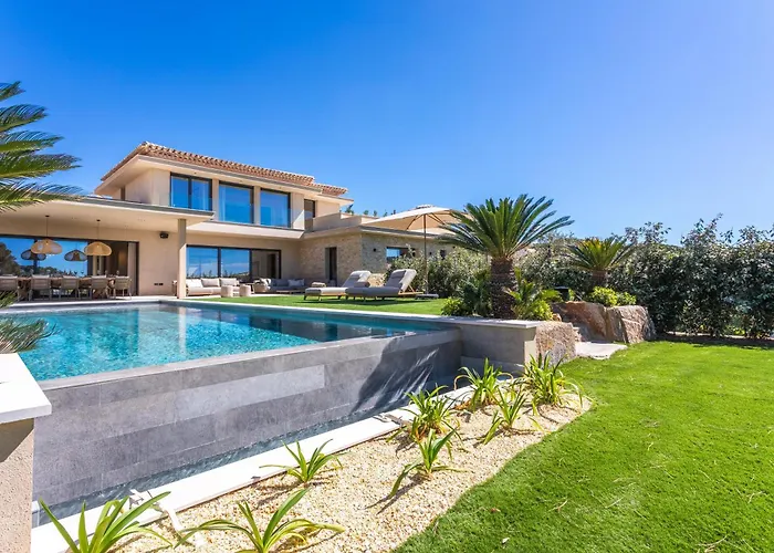 Hyeres airport can be reached within 59 minutes drive, and natural attractions like the seasonal water park "Aqualand Sainte-Maxime" are about a 10-minute ride away. Entertainment venues in the vicinity include the Port of Sainte-Maxime, which is 2.4 km away. Nestled around a 15-minute drive from the Citadel of Saint-Tropez, Villa 400M² Vue Mer Proche Centre is also around a 20-minute ride from such cultural places as the Annonciade Museum.